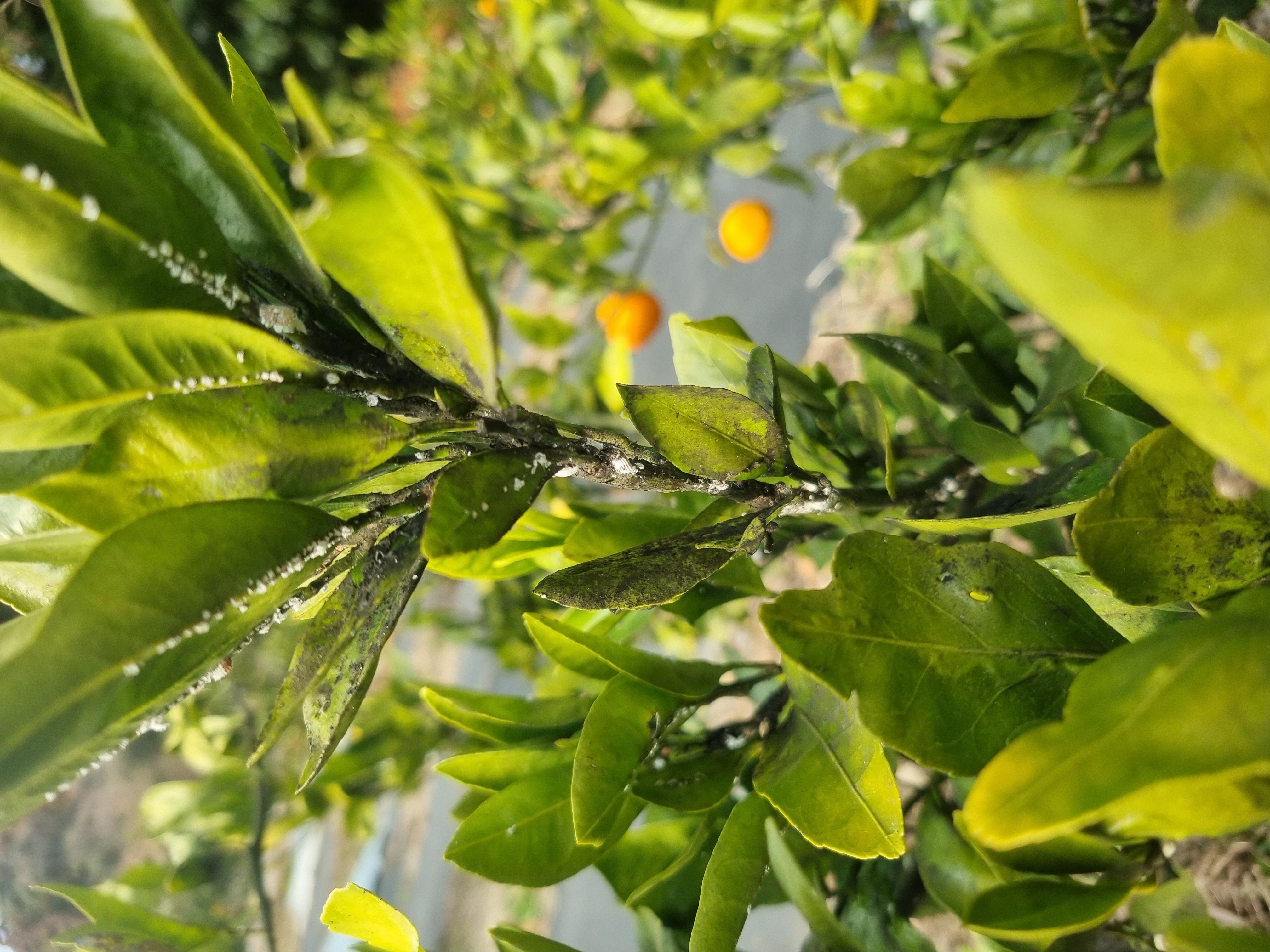 주변에 검정색 곰팡이는 깍지벌레 배설물에 의한 그을음병입니다.